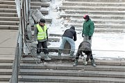Пока же, учитывая погодные условия, работы на Потемкинской лестнице прекращены, ведется только уборка снега. Действительно, отметил В. Суханов, рабочие лопатами повредили в некоторых местах гидроизоляционную пленку, но она легко ремонтируется или при необходимости заменяется.