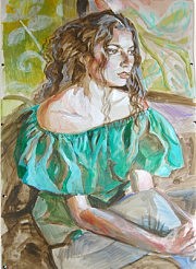 1. Мне, как человеку, неоднократно сдававшему донорскую кровь, особенно приглянулась гематома на правой руке портрета девушки с одухотворённым и красивым лицом. У меня они тоже бывали после того, как медсёстры не могли с первого раза попасть иглой в вену. На рассасывание таких внутренних кровоизлияний иногда уходит больше двух недель. От всей души желаю портретируемой избавиться от этого неприятного явления как можно быстрее! Ну, и если продолжить вверх ось её локтевой кости правой руки, то она в плечевой сустав никак не попадает. Видимо, это тоже результат того забора крови.