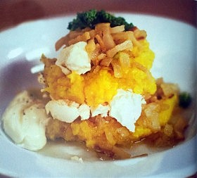 ИНГРЕДИЕНТЫкукурузная мука грубого помола — 1 стаканвода — 4 стаканабрынза — 150 гсало — 150 грепчатый лук — 2 шт.сметана — 4 ст. л.соль, перец…
