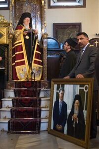 После окончания литургии Виктор Ковтун и его брат, директор художественной галереи в Киеве Сергей Ковтун, внесли картину в центр церкви. В своем обращении к Вселенскому патриарху художник подчеркнул уважение, которым пользуется Константинопольский патриарх в Украине, и пожелал ему долгих лет служения церкви, здоровья и активности на его праведном пути.