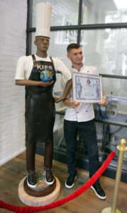 Шоколадка высотой 2 метра 4 сантиметра и массой 32 килограмма, представляющая собой копию шеф-повара шоколадной мастерской «Kiss Chocolaterie» (Ришельевская, 5) Руслана Громаковского, руководившего созданием своего двойника, была торжественно представлена для всеобщего обозрения 11 июля.