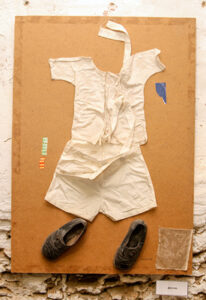 Свои абстрактные и полуабстрактные работы автор «для усиления восприятия зрителем» снабдил коллажами в виде раскрашенных дощечек («Фиолетовая зависимость»), детских вещей («Детство»), коробки («Подарок»), компакт-дисков («Автопортрет зрителя») и других предметов.