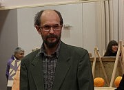 — На этой выставке нет новых работ, — честно признался автор. — Двадцать картин подобраны по цвету — оранжевому, а Хэллоуин «подтянул» тыквенные натюрморты… Все это напоминает фильм, который вы когда-то видели, а теперь пересматриваете. Те «эпизоды» фильма, которые относятся к сюжетам с батареей отопления, написаны еще в 2011 и 2012 годах, здесь как-то удалось предугадать грядущие испытания с ростом тарифов, и картины оказались актуальными. В этом фильме я и художник-декоратор, и режиссер.