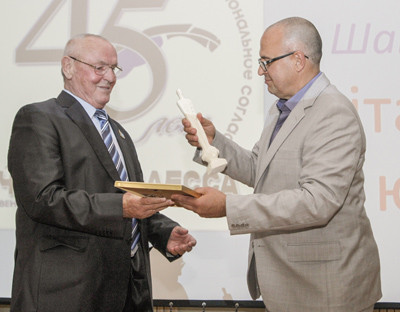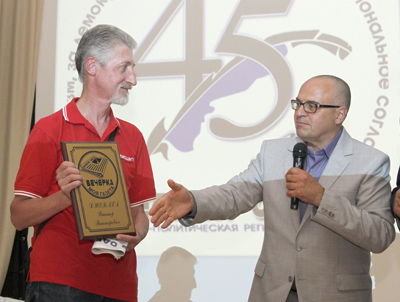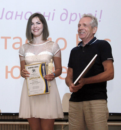 Олег Суслов поблагодарил за работу всех сотрудников «Вечерней Одессы», а присутствующие щедро наградили нас аплодисментами. Но две фамилии «вечеркинцев» заслуживали особого внимания, и редактор пригласил на сцену заслуженного журналиста Украины Ларису Бурчо, двадцать лет назад принявшую руководство газетой в тяжелые, трагические дни и не давшую осуществиться звучащим тогда мрачным прогнозам «Нет Деревянко — не будет и газеты», и Валентину Онькову, заведующую отделом писем и социально-бытовых проблем, зачисленную в штат редакции ровно 45 лет назад, накануне выхода в свет первого номера «Вечерней Одессы». Мы вручили цветы нашим коллегам, а также членам семьи Бориса Федоровича Деревянко — дочери Алле Борисовне и внучке Ольге, чьи публикации наши читатели уже не раз видели на страницах газеты. Эту дружбу мы очень ценим.