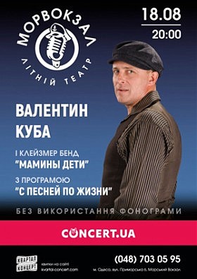 18 августа в Летнем театре «морвокзал» состоится концерт известного шансонье Валентина Кубы. Специально для одесситов Валентин Куба подготовил грандиозную программу. Любимый одесситами шансонье подготовил уже…