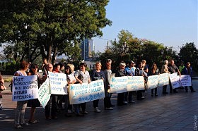 Сессионный день начался с протестной акции на Думской площади — представители профсоюзов, общественники, жители языком плаката обращались к депутатам и руководству города с требованием не отдавать в аренду компании «Будлайф инвест» земельный участок под санаторием «Красные зори». А это четыре гектара на улице Бернардацци. Протестующие говорили о том, что отчуждение имущества у «Укрпрофздравницы» незаконно, а захват «Красных зорь» — рейдерский. Сюжет на эту тему на днях показал центральный телеканал. Жители близлежащей территории уже продолжительное время могут наблюдать нынешнее состояние здравницы — разрушающиеся, разграбленные корпуса.