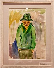 Вот на всю огромную выставку я обнаружила всего… два портрета! Оговорю: не «фигуры», не «лица», не этюды, а именно психологические портреты. Довольно интересный характерный мужской портрет «На Привозе» работы одессита Виктора Новотного: интересный психологическим эффектом «моментальной фотографии», выполненной, однако, вовсе не моментально, не а-ля прима, а методом многократной смывки: это нелегкая техника. Помню, из студенческих лет, виртуозно исполненный образец: «Портрет пианистки Элисо Вирсаладзе» кисти великого сценографа Давида Боровского.