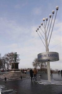 В воскресенье на Приморском бульваре началось празднование одного из главных праздников иудаизма — Хануки. Верующие евреи празднуют его восемь дней, каждый день зажигая на ритуальных подсвечниках дополнительные свечи. Уже стало традицией в честь праздника рядом с памятником Дюку де Ришелье устанавливать огромный девятисвечник, на котором в каждый день праздника будет зажигаться новый огонь.