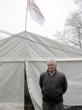 Над большой белой палаткой на Куликовом поле развевается флаг Международной миссии «Новая жизнь». Здесь в холода могут согреться, попить горячего чаю, поесть бездомные люди. Поделятся…