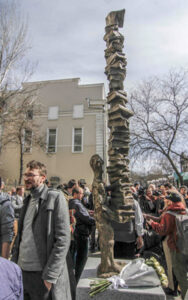 В минувшую пятницу возле Национальной научной библиотеки (бывшей «Горьковки») на улице Пастера состоялась торжественная церемония открытия новой скульптуры Михаила Ревы.