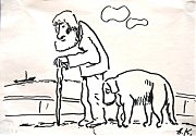 Их психология. Их взаимоотношения. Их похожесть — собак на хозяев и хозяев на собак. К своему альбому Князик написал психологический этюд о человеке и собаке. И стало ясно, что в его лице мы недосчитались незаурядного писателя. И все же главное — рисунки. Они все сделаны с любовью. Даже иронические. Есть что-то прекрасное в этом единении, в этой дружбе человека и животного.