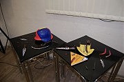 Напомним, в клубе недавно демонстрировалась организованная Константином выставка «Око Давида», в экспонаты которой были включены найденные на родине Бурлюков предметы — амбарные ключи, гвозди, пуговицы, монеты, деревянные элементы, керамика. На этот раз художник предъявил зрителям «каску основателя футуризма Филиппо Томмазо Маринетти», который, как известно, был в 1942 году под Сталинградом и разделял идеи Муссолини. На самом деле, конечно, это каска с неизвестного убитого фашистского ефрейтора, но можно предположить, что она могла послужить и Маринетти. Также в экспозицию вошли единственная в мире официальная карта хутора Семиротовщина, где родился Давид Бурлюк, и уникальные артефакты — наконечники копий, серпы, старинные монеты, которые обрели вторую жизнь.