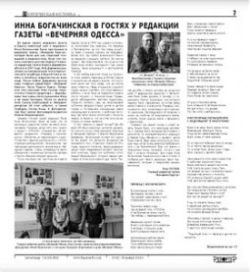 Месяц назад «Вечерняя Одесса» принимала в своей гостиной давнего и искреннего друга газеты, журналистку, начинавшую творческий путь в «Вечерке», поэтессу, чье творчество известно всем, кто любит искренне поэтическое слово, Инну Богачинскую. Об этом рассказывалось в номере за 10 октября.