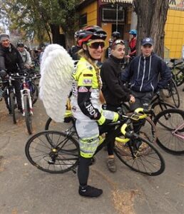А затем возглавляемая полицейской машиной колонна покатила по местами нестандартному маршруту длиной чуть более 20 км: от Приморского бульвара до парка возле облгосадминистрации, где прошли выступления, посвященные правильному питанию и стилю одежды велосипедистов.