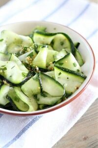 Ингредиенты: кабачки — 500 г, растительное масло — 100 мл, уксус (желательно винный или яблочный) — 3 ст. ложки, мед — 2 чайные ложки, чеснок — 2 зубчика, соль — 0,5 чайные ложки, перец по вкусу, зелень — по вкусу.