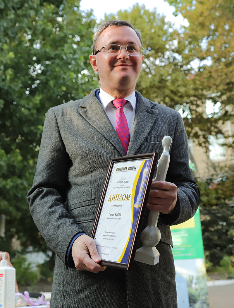 Диплом и статуэтка «Садовник» вручена директору одесского лицея №9 Сергею Копачу. Лауреат конкурса «Люди дела» прошел все ступени работы в школе — учитель, завуч, директор, но учиться не перестает. Сергей Копач — реформатор, стремящийся вывести процесс обучения в школе на новый уровень.