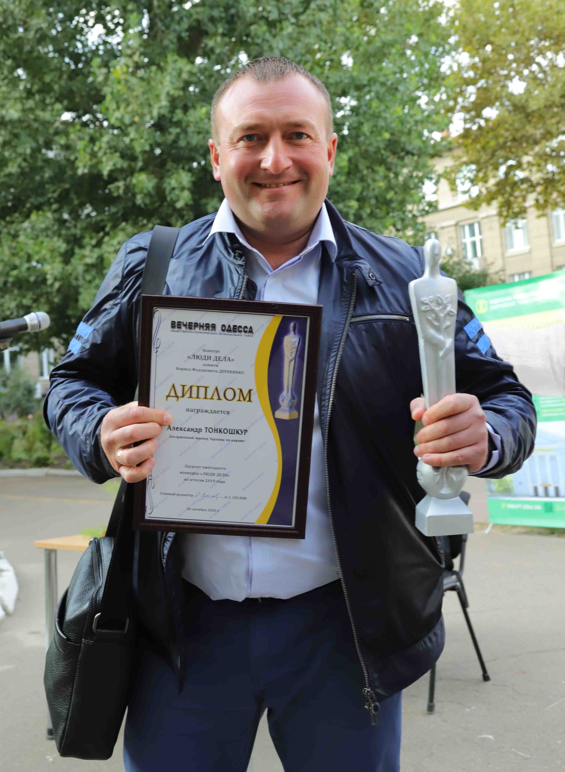 Лауреатом конкурса назван еще один представитель мира спорта. Александр Тонкошкур — заслуженный тренер Украины по каратэ. Сборная Одесской области, которую он возглавляет, на чемпионате Украины выиграла 19 золотых медалей и заняла 1-е командное место. Ученица Тонкошкура Анита Серегина стала чемпионкой Европейских игр.