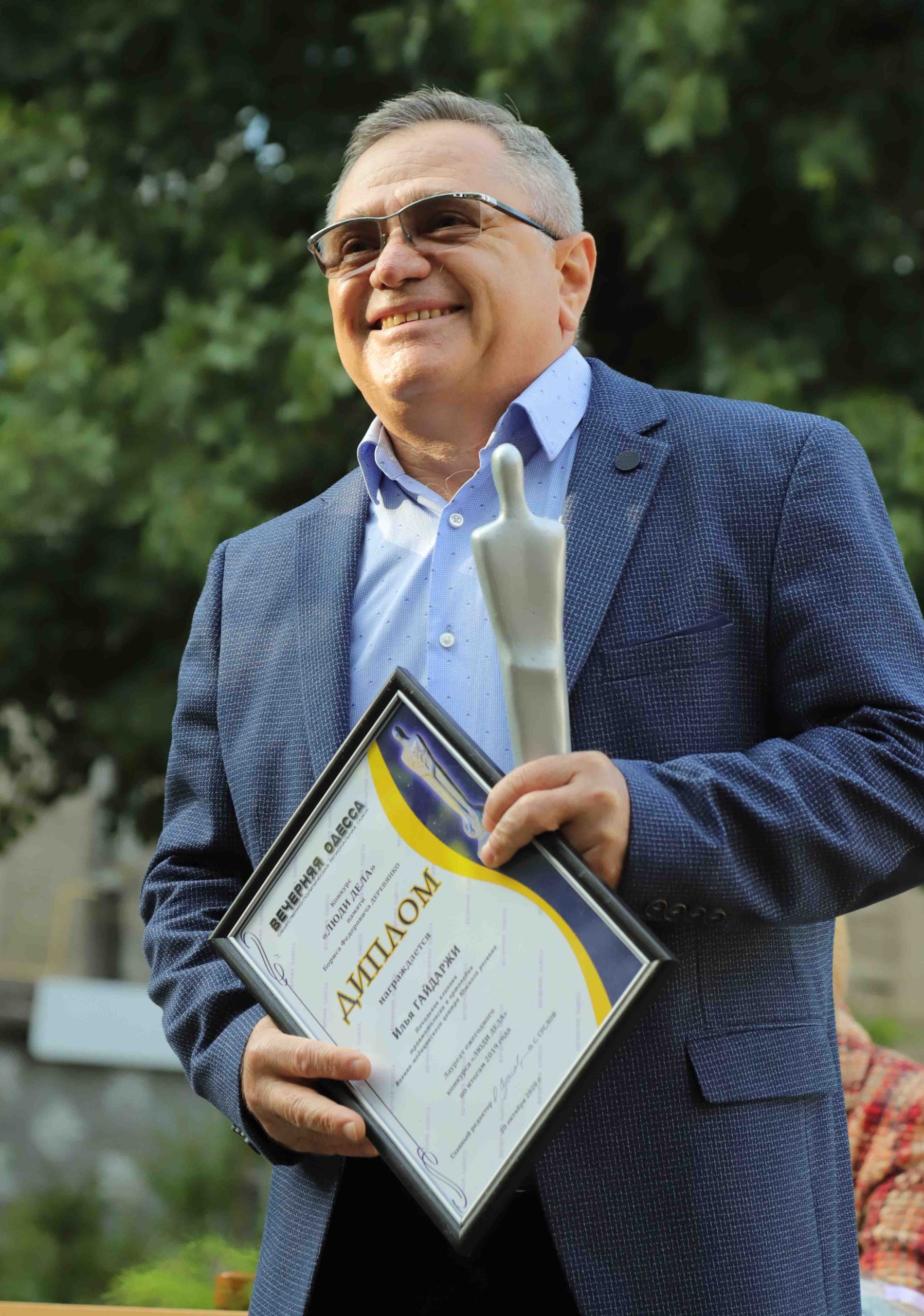 Представители врачебной профессии практически всегда присутствуют в списках лауреатов конкурса «Люди дела». В этот раз прозвучало имя личности известной и легендарной. Илья Гайдаржи — начальник клиники травматологии и ортопедии Военно-медицинского центра Южного региона, полковник медицинской службы, заслуженный врач Украины. Более 40 тысяч операций провел, с раннего утра он на рабочем месте, и благодаря его помощи многие в прямом смысле встали на ноги, вспоминая всю жизнь добрым словом талантливого доктора. Диплом лауреата конкурса и статуэтку «Садовник», как сказал, сначала покажет семье, любимой и тоже медицинской, а затем поставит в своем рабочем кабинете.