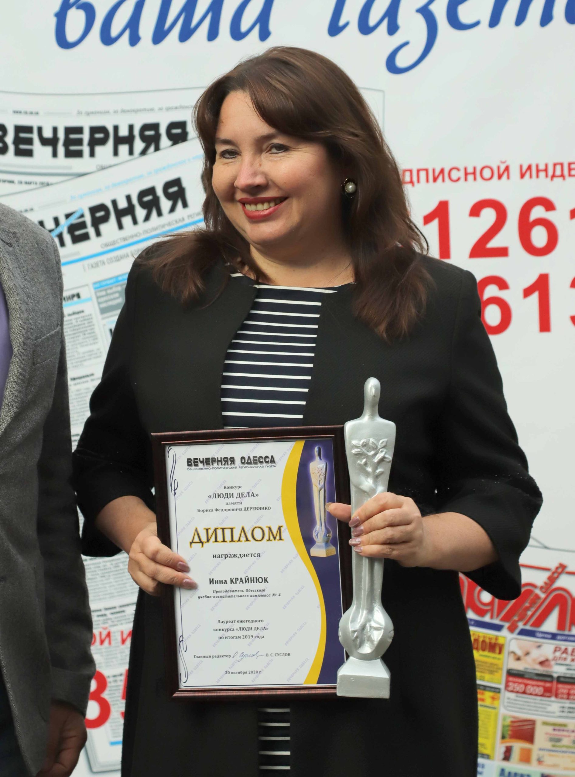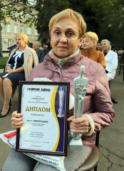 — Я помню на своем журналистском пути не одну церемонию награждения и тех великолепных, потрясающих одесситов, удостоенных чести быть лауреатом конкурса «Вечерней Одессы» «Люди дела». Быть одной из вас — громадный аванс. Постараюсь не подвести! Спасибо «Вечерке» и членам жюри, — сказала Ирина.