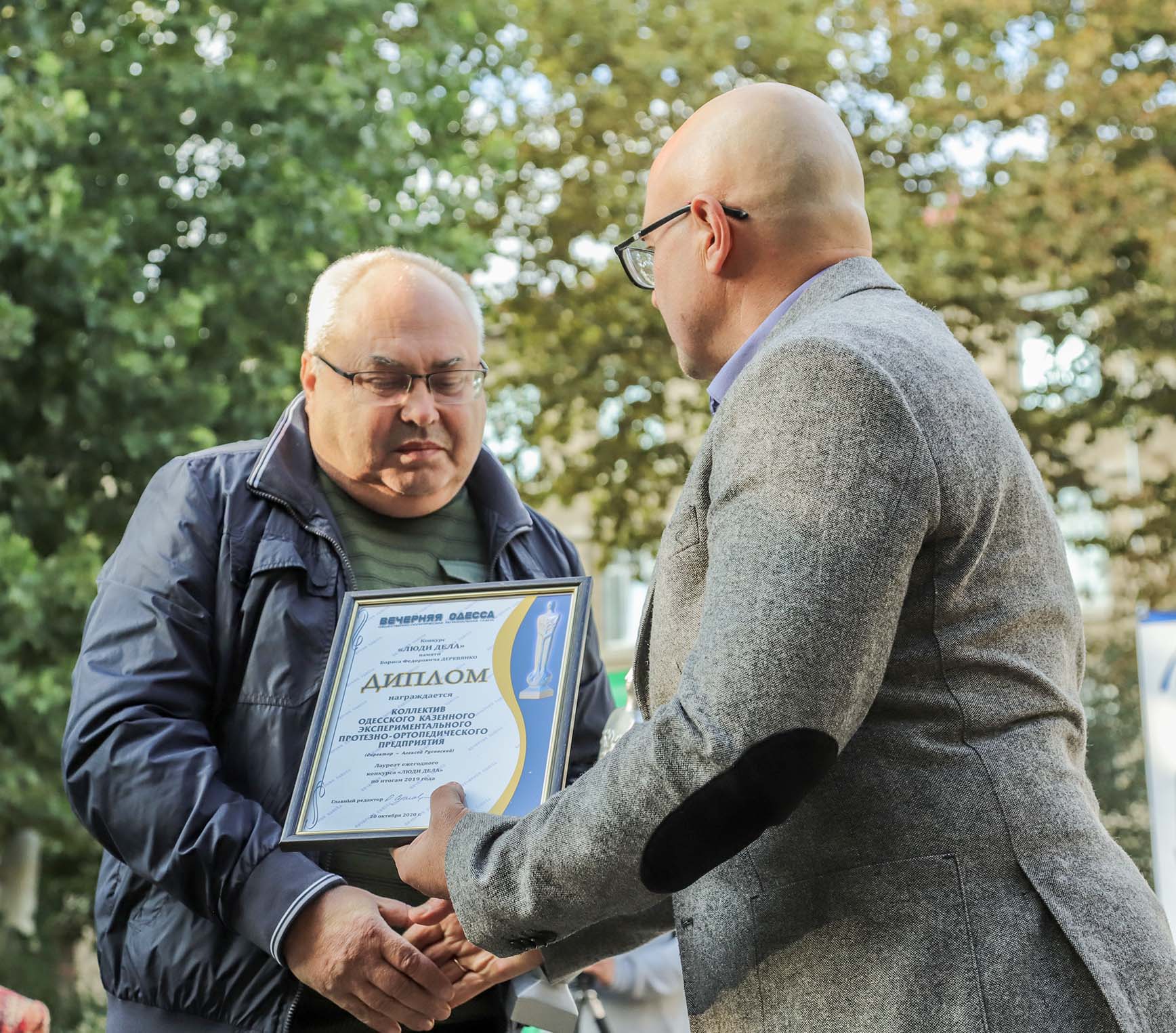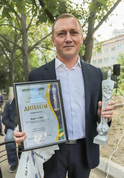 Еще одна коллективная награда — Одесскому казенному экспериментальному протезно-ортопедическому предприятию, директор — Алексей Русавский. Протезному заводу, как называют его в обиходе, исполнилось 75 лет, и переоценить значение работы специалистов трудно. Свыше ста сотрудников обслуживают более 40 тысяч пациентов, делают для людей с ограниченными физическими возможностями изделия, сглаживающие болевые ощущения, обеспечивающие комфорт в движении, возвращающие в строй. Награду на нашем вечере получил главный инженер предприятия Юрий Бутманов.