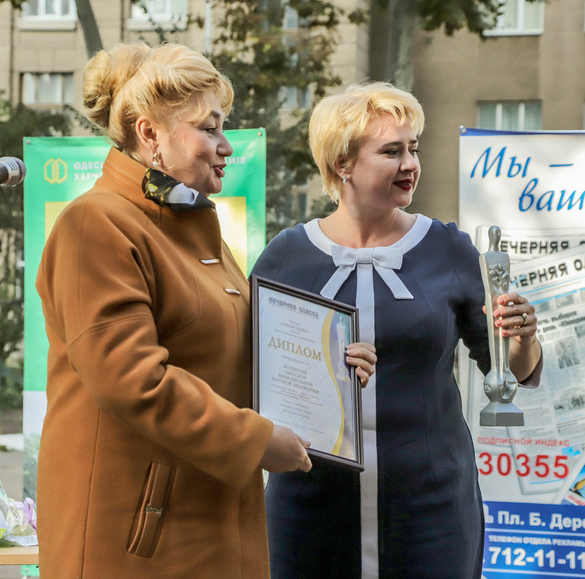 Совместная работа и дружба связывают газету не только со Всемирным клубом одесситов, а еще и с коллективом Одесской национальной научной библиотеки. «Вечерняя Одесса» поддержала проект летнего читального зала «Литера», участвовала во многих значительных проектах библиотеки. А их за минувший год было немало. В 2019-м ОННБ отметила 190-летие, и это стало заметным событием. Коллектив под руководством генерального директора Ирины Бирюковой, заместителя директора по библиотечной работе Ольги Бельницкой осуществил целый ряд масштабных проектов. Прибавить к этому реставрацию зала редкостных изданий и рукописей, ремонт залов одессики, искусств, кабинета-гостиной научных работников, оцифровку 600 экземпляров коллекции старинной гравюры из фондов библиотеки — и станет понятно, почему жюри безоговорочно согласилось с мнением редакции и назвало коллектив ОННБ лауреатом конкурса «Люди дела».