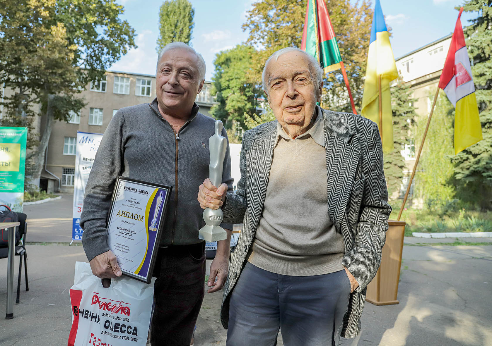 Дипломы лауреатов конкурса и эксклюзивные статуэтки «Садовник», придуманные по нашей просьбе известным скульптором Александром Князиком, в этот раз получили три коллектива. Всемирный клуб одесситов — общественная организация, отметившая в нынешнем году 30-летие. Ее бессменный президент — Михаил Жванецкий. Рассказывать об Одессе, популяризировать наш город, объединять одесситов, где бы они ни жили — с этой задачей клуб отменно справляется. Вице-президент клуба, известный журналист и когда-то наш вечеркинец Евгений Голубовский и директор ВКО Григорий Барац получили награды конкурса «Люди дела».
