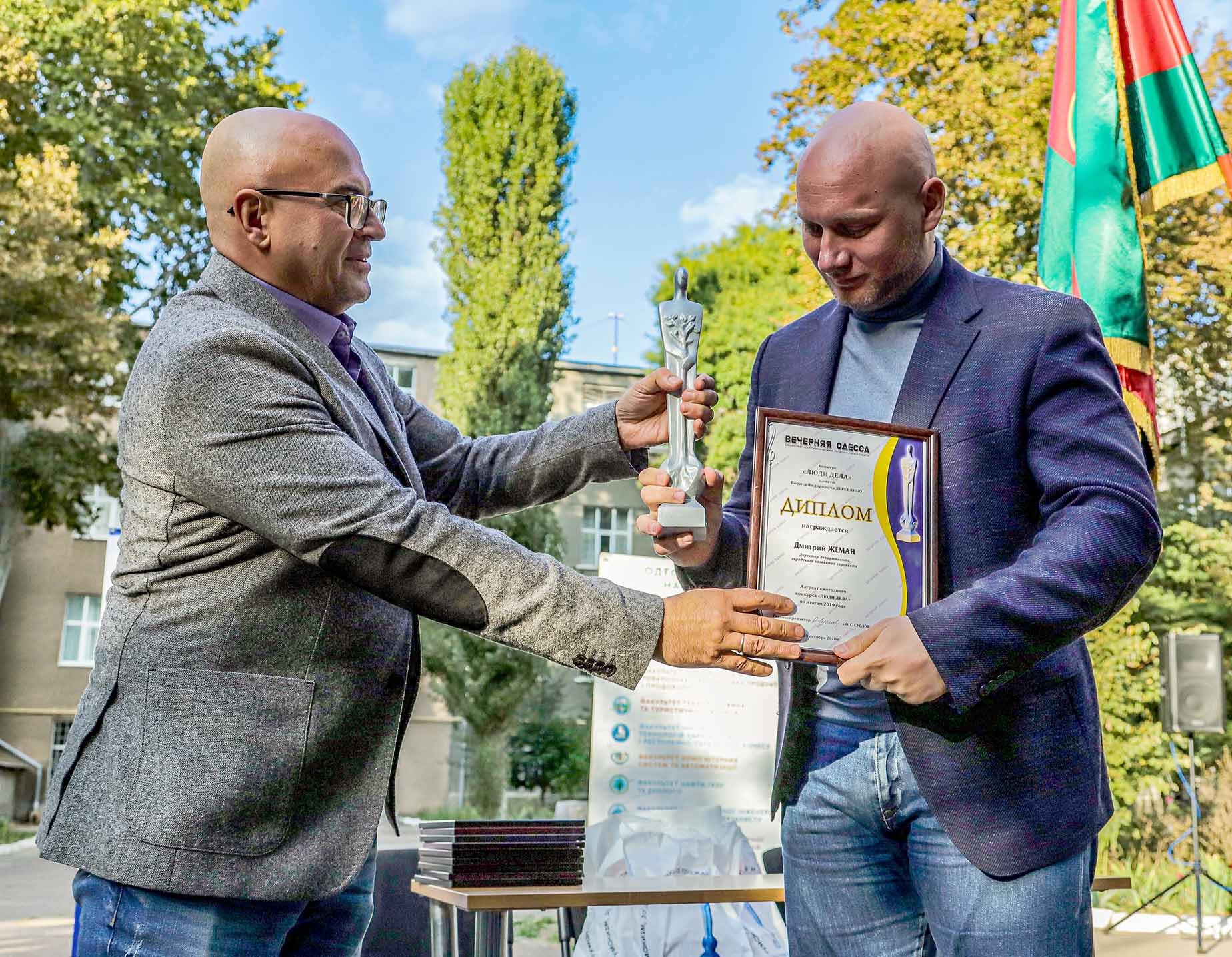 Как всегда, на помощь пришли друзья, и решение проблемы нашлось. Ректор Одесской национальной академии пищевых технологий Богдан Егоров предложил провести чествование лауреатов конкурса во внутреннем дворике вуза, на открытом воздухе, с соблюдением всех карантинных предосторожностей (маски, антисептики, социальная дистанция). Мы ограничили количество гостей до обязательного минимума, просим извинить нас тех, кого пригласить не было возможности.