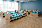 У интерьера каждой группы есть свой стиль. Просторные игровые комнаты украшены яркими рисунками, а спальни разрисованы нежными пастельными тонами. На территории детсада есть спортивные и игровые площадки, а также зал для занятий по музыкальному и физическому развитию. Предусмотрены условия для развития инклюзивной среды.