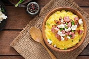 Для двух больших порций баноша вам потребуется: кукурузная мука тонкого помола — 120 г, сливки жирные домашние — 120 г, вода или молоко — 600 г, соль по вкусу, белые сушеные грибы (отварные) — 50 г, брынза овечья — 60 г, сало малосольное — 60 г, петрушка, венгерская или бессарабская паприка.