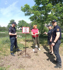 З цією метою за участю не байдужих суб’єктів господарювання району виготовлено та встановлено показчики щодо заборони купання у водоймах парку культури та відпочинку ім. Савицького та по вул. Василя Стуса.