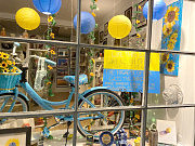 С помощью фотографий супруги рассказали о том, что в городе, где живет всего около 22 тысяч человек, а украинцев нет вовсе, поддерживают Украину. Елена и Марк у входа в свой дом установили два флага — американский и украинский, причем уже давно, еще до войны. А сейчас украинские флаги повсюду: в Бристоле их 10. Для такого городка это немало. «В магазине, где выставляются местные художники, оформили витрину в цветах Украины и выставили на аукцион велосипед. Вырученные деньги пойдут на помощь украинским беженцам», — рассказали Елена и Марк.