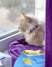 З холодами Жофрей менше став бувати на вулиці. Він полюбив підвіконня. Може годину сидіти і вдивлятися через вікно у навколишній світ. І тоді він мені нагадував мене саму в дитинстві. Я була хворобливою дитиною. І коли хворіла, мене не водили до дитсадка, а запирали вдома. Я сідала на підвіконні, дивилася на вулицю і мріяла… Про те, як стану дорослою… А враховуючи, що я була дитинкою начитаною (телевізору тоді у нас не було), то подумки бачила себе героїнею різних пригод та подвигів. Цікаво, про що мріє цей мій кіт? І взагалі то мені невідомо, чи мріють коти?