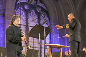 Уже во второй раз за время войны известный кларнетист Юлиан Милкис выступает в родном городе. Музыкант в сопровождении оркестра Центра военно-музыкального искусства ВМС ВС Украины…