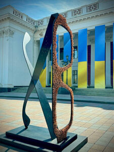 Мовою візуального мистецтва скульптор розповідає про злочини російської армії, використовуючи фрагменти знищеної техніки окупантів, зброї та осколків ракет, які ворог направляє для вбивства та руйнування цивільних об’єктів.