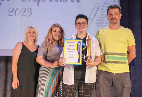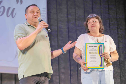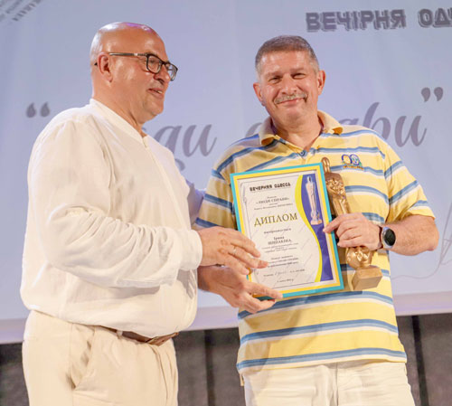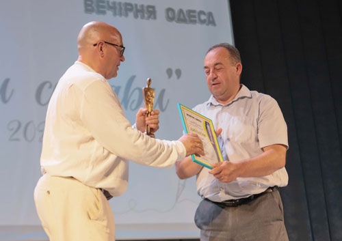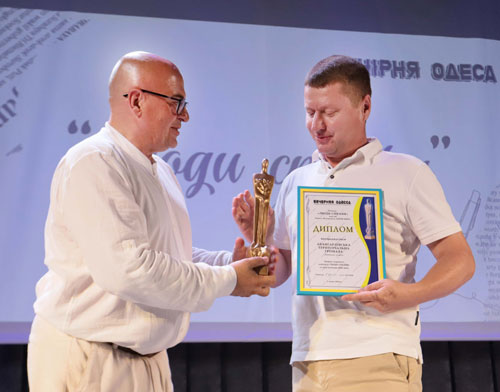 Зазвичай наш список лауреатів складений за алфавітом — так справедливо. Але ми завжди робимо один виняток — першим отримує нагороду лауреат, на території якого ми знаходимося. Ви знаєте, що ми кожного року намагаємося запросити наших гостей у цікаві місця, можливо, у такі, де вони раніше не були. Цього разу нас люб’язно запросили у міський комунальний заклад «Одеський палац дитячої та юнацької творчості «Біла акація». Три роки тому ця сучасна будівля відкрила свої двері, очолила колектив талановита, досвідчена людина Людмила Прокопенко. Ковід, а потім війна завадили роботі закладу, але не зупинили її. Публікація в газеті так і називалась «Зустрінемось на великому дитячому концерті після перемоги». Для отримання нагороди конкурсу першою запросили на сцену Людмилу ПРОКОПЕНКО, вручили диплом, статуетку «Садівник» и книги про газету, її першого редактора, про конкурс. З цікавістю слухали розповідь про історію появи на карті міста цього осередку дитячої творчості: