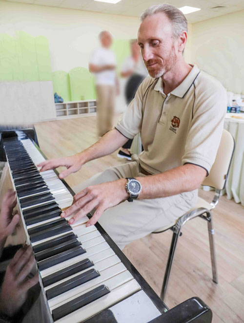 І ось нарешті — музична пауза! Дві пісні подарували залу Максим та його побратими — педагоги Павло Влаєв і Костянтин Желєв.
