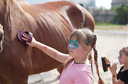 Після знайомства з мешканцями кінного клубу дітлахи потрапили у обійми спеціалістів з аквагриму, які втілили у життя усі забаганки маленьких містян — серця, перлинки, прапорці України, зображення різноманітних тварин — все, щоб хлопці і дівчатка могли похизуватися одне перед одним і посміхнутися.
