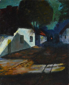 — У фондах нашого музею серед численних картин зберігається одна, яка нещодавно стала предметом дослідження — «Пейзаж з будинками» (полотно, олія, 40,5х32,5 см). Перше враження від неї породжує відчуття чогось небезпечного та загрозливого. Цьому сприяють різкі лінії, напружена гамма темних кольорів, відсутність напівтонів, нічне освітлення. Сплощеність форм, побудова простору картини із простих геометричних планів надає композиції силу емоційного впливу на глядача і дає підставу вважати її твором німецького експресіонізму початку ХХ століття.