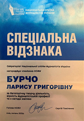 Така новина — в день ювілею нашого другого редактора. До звань та нагород доєдналася висока відзнака професійної спільноти. Своїм трудовим життям, творчістю, вірністю професії Лариса…