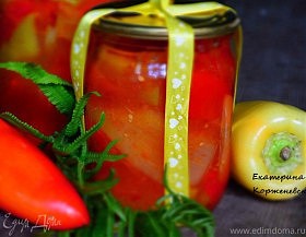 Выход 5—5,5 л. Томатный сок — 1,5 л, сахар — 2 стакана, уксус 9% — 2 ст. л., подсолнечное масло — 2 стакана, соль —…