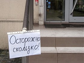 Заголовок к этой заметке «придумали» сотрудники одной из аптек, в изобилии расположенных на ул. Академика Филатова. Видите, вот такую самодельную табличку вывесили они у лестничного…