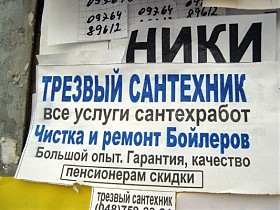 Сага о сантехнике 11 ноября, 2019 Комментариев нет На одной из троллейбусных остановок увидела на днях вот такое объявление. Предлагаю вам, уважаемые читатели, дописать самим, что, по-вашему, хотел сказать этим объявлением его автор,… Читати далі »