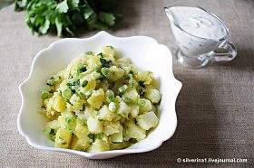 Картофель — 5 шт., петрушка — 1 пучок, сметана — 100 г, оливковое масло — 2 ст. л., лук красный (небольшой) — 1 шт., огурцы…