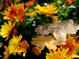 Листя падає пожовкле.Вiтерець їх розвiває.А осiннi пiзнi квiти,Двiр шкiльний наш прикрашають. Жовтi, бiлi i рожевi —Хризантеми розпустились.Мов перлинки рiзнобарвнiКвiточки на них з’явились. На покровцi нiжнi…