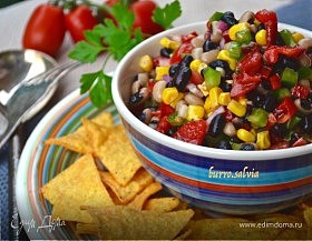 Фасоль «черный глаз» — 100 г, фасоль черная — 100 г, кукуруза консервированная — 200 г, перец болгарский красный — 1 шт., перец болгарский зеленый…