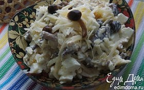 Сыр — 80 г, яйца куриные — 2 шт., куриные грудки вареные — 1 шт., майонез домашний — 1 ст. л., лук репчатый — 1…