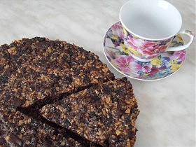 250 г черного шоколада, 250 г грецких орехов, 200 г чернослива, 3 ст.л. сахара, 4 яйца, сливочное масло (для смазывания формы). Орехи мелко (но не…