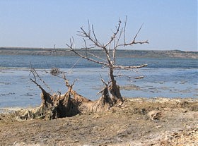 То, что издали виделось как серебряная полоска воды, на самом деле оказалось солончаком, покрытым мелкими трещинками-морщинками, — дно лимана, из которого ушла вода. Посередине торчал…