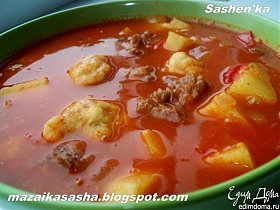 1 кг мякоти нежирной говядины, 1 кг картофеля, 4 луковицы, 1 сладкий перец, 2 помидора, 6 зубчиков чеснока, 3 ст. л. паприки, 1 пучок укропа,…