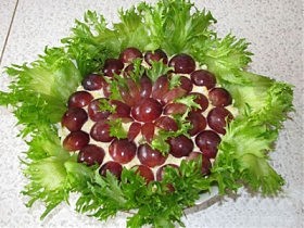 Виноград без косточек — 100 г, сыр — 200 г, майонез — 200 г, молотый жареный миндаль — 50-75 г, куриная грудка — 500 г,…